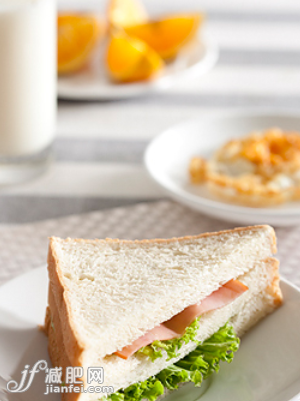用不粘鍋的話煎蛋就無須放食用油,再取兩片全麥切片面包,還可以按自己的口味加火腿,生菜和脫脂色拉醬即可;用時令水果調配不同的果汁,鮮橙胡蘿卜汁,甜瓜蘋果汁,純獼猴桃汁,純黃瓜汁都會是很好的選擇。