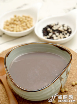 做法:將黃豆洗凈,加水3杯浸泡1夜后,用果汁機高速打成泥狀,倒入鍋中再加3杯水以中火加熱,煮至即將沸騰時必須小心加以攪拌。煮沸后過濾除渣即可。