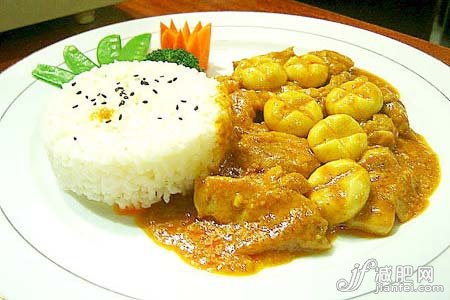 2.雞腿肉100克,蘑菇片50克,洋蔥10克,番茄醬10克,油咖厘10克