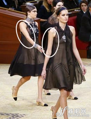 如果你不覺得卡拉姐姐的手臂很粗,請注意,尖酸刻薄的小編已經(jīng)找到了對比圖,走在前面的超模手臂可是遠遠地細于卡拉姐姐哦!而且對比一下卡拉姐姐和前面的 超模姐姐穿的服裝,我們能夠很鮮明地看到,這件衣服事實上是有腰線的,只不過卡拉姐姐的這件衣服腰線是在腰部以上的,反而把腰部搞沒了!所以微胖的妹子不 要想著高腰線了,看看卡拉姐姐的慘劇吧!