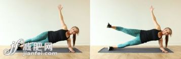 先側(cè)面躺在瑜伽墊上,用胳膊肘先把上身撐起來,再利用大腿,手臂,腰部的力量一起把整個身體撐起來,保持側(cè)身與地面的垂直狀態(tài),同樣花式做腿部的上下動作,左右兩邊交替重復(fù),保持動作的準(zhǔn)確性。