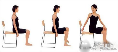 雙腿并攏坐在椅子的1/3處,雙手自然垂放,挺直腰背。吸氣,將右腿跨放于左腿上,緩緩?fù)職猓笫治兆∮蚁?,右手向后,抓住左?cè)椅座,上身向右扭轉(zhuǎn),達(dá)到自己所能的到達(dá)的最大幅度后停留數(shù)秒,做深呼吸,然后回到起始動作,換左腿進(jìn)行,重復(fù)動作15-20次。這個動作可以減掉小腹上的多余脂肪,纖細(xì)腰圍,塑造完美腰腹線條,同時還能矯正脊椎,消除疲勞。