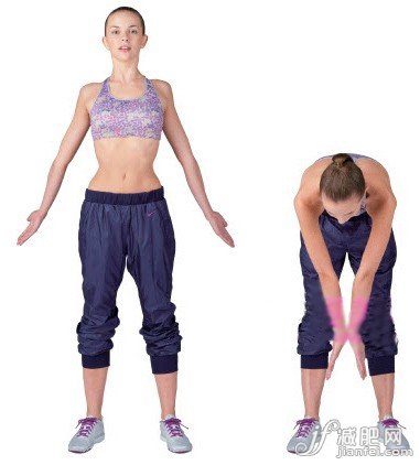 Step 1 轉(zhuǎn)動(dòng)肩胛骨:1、兩腿張開與肩同寬站立,上身與兩腿成一個(gè)平面,腰背挺直,收起腹部,兩肩放下,肩胛骨向后打開,兩臂繃直手肘左右斜下張開,手掌轉(zhuǎn)向左右兩側(cè),胸廓充分外擴(kuò)。2、向前俯身,彎下腰,兩臂往下擺,并轉(zhuǎn)動(dòng)肩關(guān)節(jié)360度,令手腕背部在膝前相貼,手掌依然向外,但手背與手指相離。
