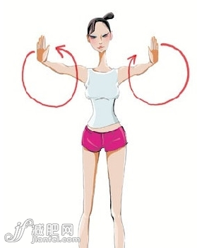 Step 2:以肩膊為中心點, 手掌先向前畫大圓圈。