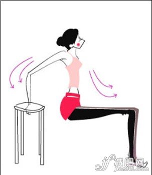 Step4、凳子緊靠墻,身體挺直坐著凳子上,雙腿并攏,雙腳著地,雙手自然放下按住兩邊的凳子上,然后臀部離開(kāi)凳子約15cm處,保持與凳子同高,大腿與小腿成90度,持續(xù)20秒。