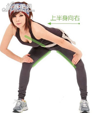 雙腳打開比肩膀?qū)?,雙手放在膝蓋上。膝蓋彎曲,將臀部向后推出。