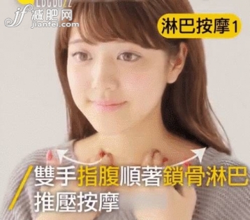 step1:用雙手順著鎖骨進行推壓與按摩,幫助促進淋巴排毒的同時也可以起到緩解肩頸疲勞的作用。