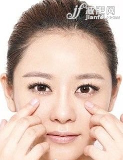用中指按住眼角正下方,上下按摩。