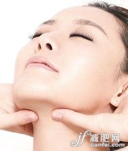 抬起頭,大拇指從喉嚨凹處向下頜骨方向疏通。雙下巴的人著重這里,4個手指抱著頭部,用大拇指按壓下頜骨的凹處,能減少雙下巴。