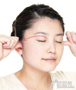 眼部周圍的浮腫也會導(dǎo)致整個面部的靜脈阻塞,雙手握拳,伸出拇指,指腹按在眉頭與眼睛之間的凹陷處,用力適度地輕擦眼部,順著眼睛上方的弧度至耳珠穴。