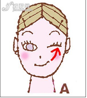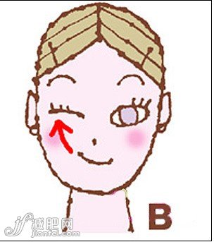 B 接著用5秒時間將右嘴角拉向右上角,閉上右眼保持5秒,慢慢回到原位。重復(fù)3次。