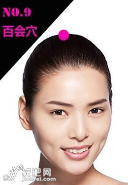 左右兩耳洞向上升,在頭部連結(jié)后的那條線的頂點(diǎn),即是百會(huì)穴。它可以起到安定精神預(yù)防飲食過量。