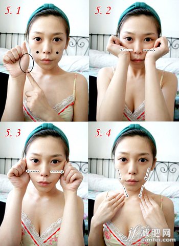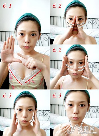 本動(dòng)作重復(fù)3次,可以有效的讓臉頰兩側(cè)的皮膚得到提升。