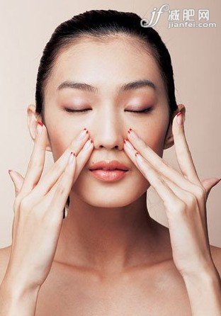 順著額頭往太陽穴,雙手稍稍用力按壓3~4次,后用中指及無名指交替按鼻翼兩側(cè),重復(fù)1~2次后用螺旋方式由上頜到耳下、耳中、鼻翼,直至耳上部按摩雙頰,完成兩次。稍休1分鐘后用拇指、食指輕挽下頜線,左右往返三次,最后用手掌輕撫頸部。