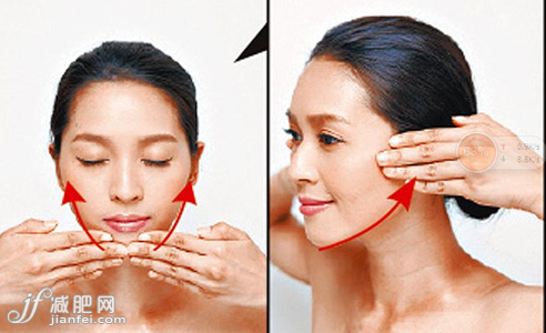 Step4:以雙手食指、中指、無名指3指指尖,從下巴中央往上滑推到耳前。