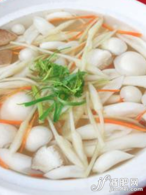 做法:茶樹(shù)菇用開(kāi)水泡軟洗凈,竹筍洗凈后用開(kāi)水煮2分鐘,撈出用冷水過(guò)一下,鍋里燒開(kāi)水,放入茶樹(shù)菇和筍子煮2分鐘后放肉絲,煮片刻再放片白菜,最后加入適量調(diào)味料即可。