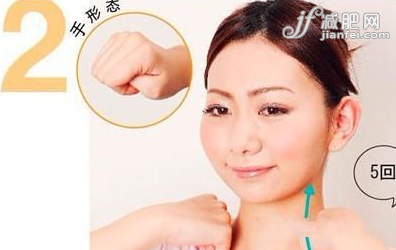 雙手輕輕握拳,拇指包在四指間。轉(zhuǎn)動手腕,在脖子兩側(cè)利用指關(guān)節(jié)上下推按,能有效將廢物排出。