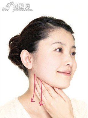 1、嘴唇緊閉,頭部微微仰起,然后用左手的拇指和食指指縫輕輕從下巴以下的位置開始往下推,動(dòng)作持續(xù)20秒。