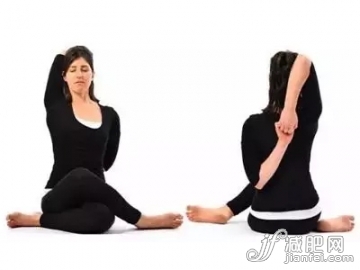 調換交叉的雙腿和相扣的雙手,重復這個體式,保持背部挺直。