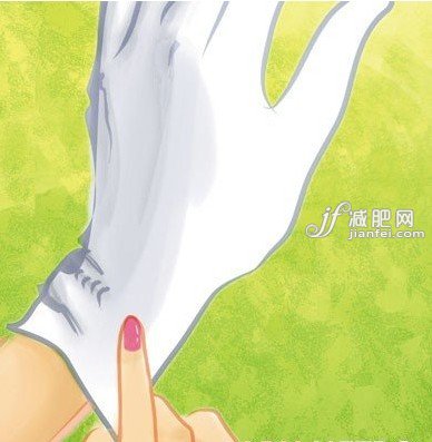 均勻地涂上按摩霜,先從手背指尖開始按摩到手指根部,動作要從容而柔和;然后呈螺旋狀按摩手掌,并用指關節(jié)輕按手心上的穴位;最后用食指和中指夾住手指,從根