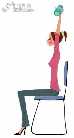 手握小啞鈴慢慢向上舉,舉過頭頂后向后彎曲,手臂靠近耳朵。接著,再慢慢向上舉,直到手臂伸直位置。整個動作重復(fù)20次后,換另一邊的手臂進(jìn)行。全套動作完成后,手臂上各個部位的肌肉就都能被鍛煉到了。