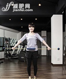 2、雙腿微微張開,身體挺直站立,保持收腹?fàn)顟B(tài),然后雙手掌心向下分別握住桿子的兩邊,雙手手掌距離約40cm左右,再往上伸直雙手抬起桿子,動(dòng)作持續(xù)20秒。