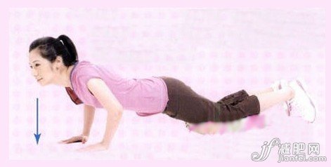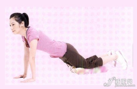 女孩伏地挺身:1、膝蓋成跪姿,雙手打開與肩同寬。