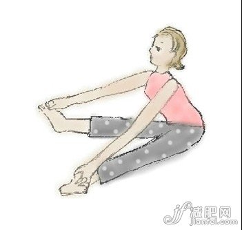 Part2:1、坐在地上,兩腿分開呈“八”字形。注意伸直,腳尖勾起。身體前俯,兩手伸直抓住腳尖,下壓。重復(fù)動(dòng)作20-30次。該動(dòng)作能有效拉伸大腿內(nèi)側(cè)肌肉,可瘦大腿。