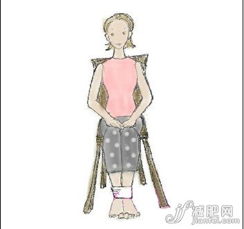 Part3:坐在椅上,收緊臀部,雙手放在大腿上,對(duì)齊兩個(gè)腳踝,可借助一條布來(lái)輕輕綁著腳踝處,讓其不移動(dòng),腳掌觸地。左右移動(dòng)膝蓋和腳踝,從一邊移動(dòng)到另一邊,記得腳步保持靜止。