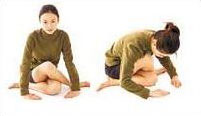 1、雙腿交叉重疊坐在地上,雙手放前面。