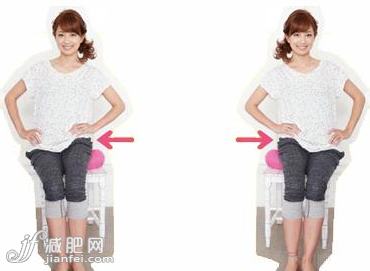1、將柱形枕放在坐骨下方,坐在椅子上。兩手輕扶椅子,保持平衡。