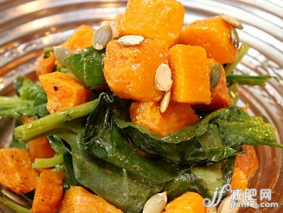 南瓜可消除水腫,與各式蔬菜一起做成沙拉,可促進新陳代謝幫助排出體內(nèi)多余的有害物質(zhì)。