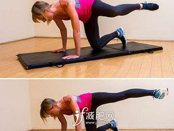 換另外的一條腿繼續(xù)重復(fù)上述的運動,這一運動每天要進行五次左右,可以讓臀部的肌肉變得緊實,從而達到提臀的目的。