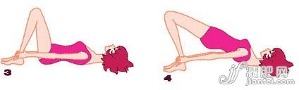 3、在胎腿時需注意足尖下壓,并且臀部不能離地。盡量將腿伸直、抬高,你會感到臀部正在收緊。