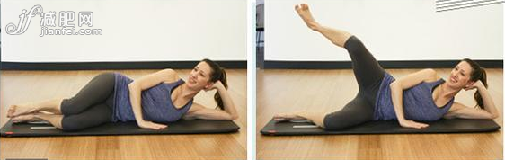 抬起上面的腿然后放下,并保持膝蓋彎曲,重復(fù)15-20次。