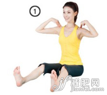 1、挺胸收腰正坐,雙腳稍稍彎曲,勾腳尖,張開比肩稍寬,雙手分別放于肩膀上,眼望前方呈準(zhǔn)備姿勢。