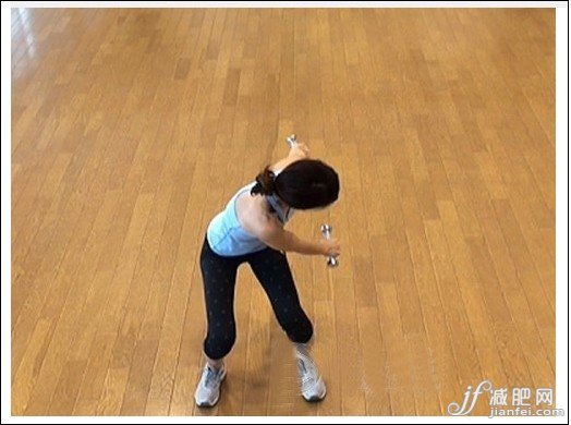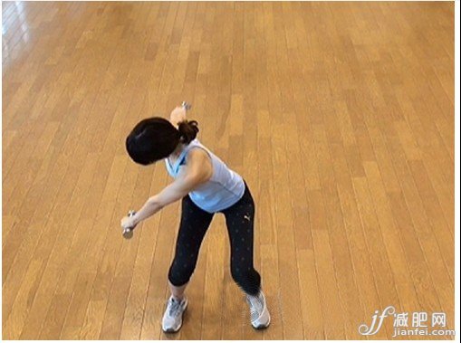 腹斜肌運動4:慢慢轉(zhuǎn)回到正面,兩手臂往左側(cè)伸。相同動作左右來回30次。期間,注意不要導(dǎo)致反作用,右側(cè)1呼吸,正面1呼吸,左側(cè)1呼吸,1個動作1個動作慢慢來。感覺如何呢?是不是感到光負荷就會運動到肌肉呢?有負荷運動時的要點,就是不要揮舞重物,不要導(dǎo)致反作用,慢慢運動,意識到鍛煉到得肌肉。