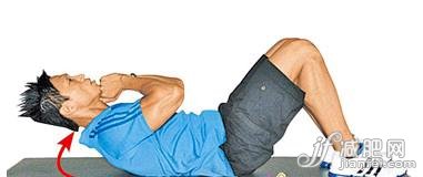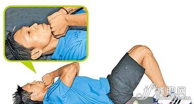 抬起上背部約30~45度左右,下背部仍貼地,停留幾秒,回到步驟1,重復(fù)10~15次。