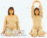 注意:膝部疾病或下肢水腫,不宜練習(xí);高血壓不宜把手高舉過頭頂;姿勢還原時伸直雙腿搖晃放松,感覺膝部彎曲不靈活可在臀部下放個墊子。