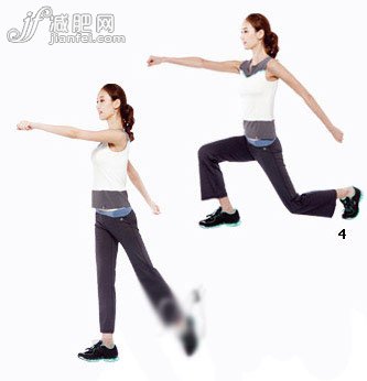 4. 之后,恢復(fù)開(kāi)始時(shí)的弓步姿勢(shì)坐下,兩腿彎曲呈90度角,兩臂再一次反復(fù)前后交替擺動(dòng)。