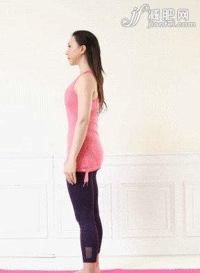 1:站立預備,雙腳與肩同寬,雙手自然垂放。