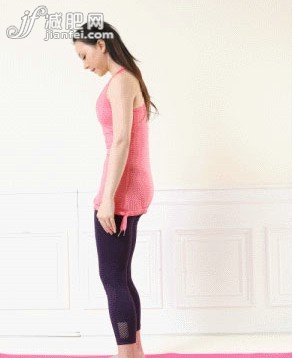 2:頭部略往前傾,肩胛骨隆起,準備作身體彎曲的動作。讓自己的身體一節(jié)一節(jié)彎曲起來,像海邊沙灘上常見的螺旋狀貝殼一樣。
