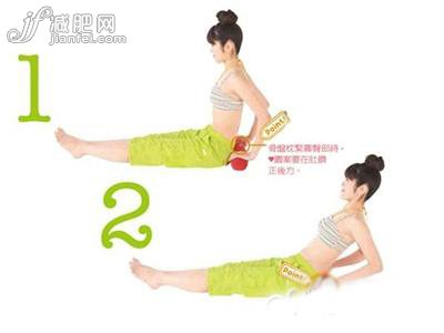 step1:雙腿伸直坐在地上將骨盆枕緊靠臀部