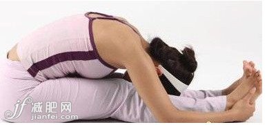 承接動(dòng)作5,雙腳并攏,兩手握住腳掌,彎腰,身體前傾,上身緊貼雙腿,保持姿勢(shì)呼吸5次?!?/p>