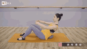 坐在瑜伽墊上,雙腳打開與肩同寬,墊一個抱枕在尾椎處,雙手抱圓,利用腹部的力量將身體往上提。