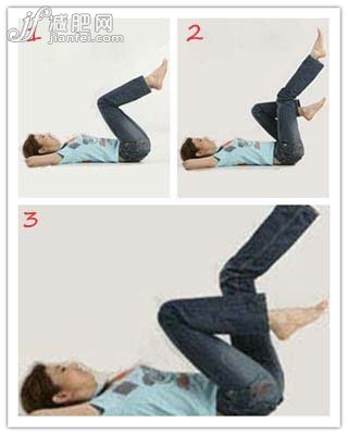 1、平躺在床上,兩腿夾緊45度屈膝蓋舉在空中。