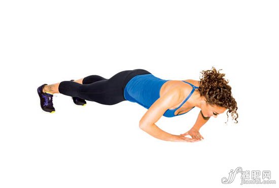 俯臥撐式準(zhǔn)備。將收手內(nèi)移,使拇指和食指形成一個(gè)三角形。然后,做一個(gè)完整的俯臥撐(如圖所示)這樣算一次。如果感覺太難,就稍微彎曲膝蓋。重復(fù)12次。