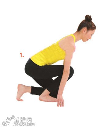 1、雙膝彎曲,左膝跪地,同時(shí)用腳趾撐地,有腳腳掌踩地,大腿與地面平衡,上身向前傾出,腰背保持挺直,同時(shí)手臂伸直,用手指撐在地上。