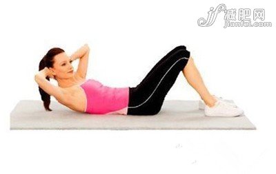 仰臥,背部著地,雙腳分開一小段距離,膝蓋彎曲,腳掌完全著地,大腿面撐直,雙手拖住頭部后方,并慢慢抬起肩膀離地,同時微微扭動面部偏向右側(cè)。