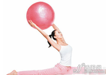 雙腿分開,做劈叉姿勢,雙臂伸直,雙手從胸前抱住健身球,向上舉,深呼吸,身體重心盡量往后傾,保持姿勢幾秒鐘。能很好地減去腰腹、腿部、手臂部位多余的贅肉。